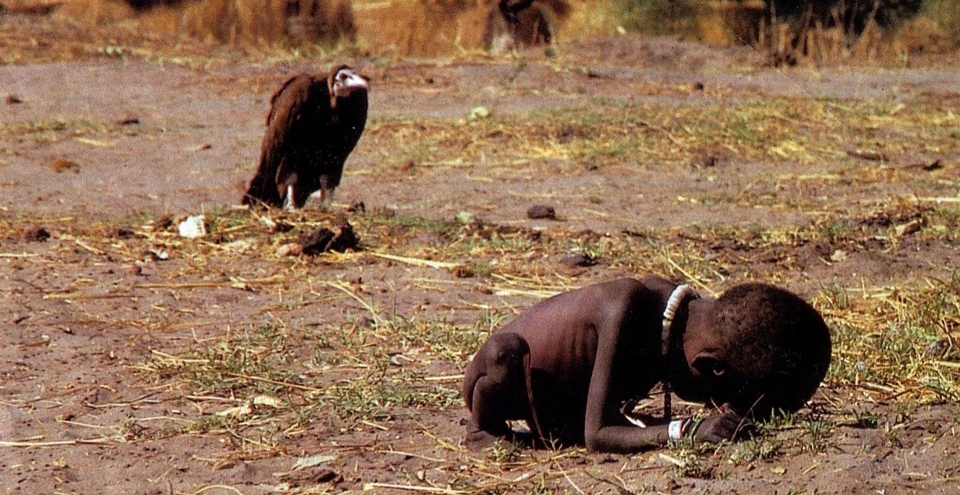 Snímek pořídil jihoafrický fotograf Kevin Carter, člen skupiny Bang-Bang Club dokumentující přechod Jihoafrické republiky od apartheidu k demokracii. Zachycuje tragický okamžik během hladomoru v Sudánu v roce 1993: vyhladovělé a zesláblé dítě se snaží dostat k humanitární pomoci, zatímco za ní, na zemi, sedí sup, který čeká na jeho smrt. Podle pozdějších informací dítě přežilo a i když Carter snímek uveřejnil s tím, že jde o dívku, zjistilo se, že to ve skutečnosti byl chlapec. (Popisek v New York Times 26. března 1993 uváděl: "Nedávno na cestě do humanitárního centra v Ayodu zkolabovala malá holčička zesláblá hladem. Nedaleko čekal sup.") Fotografie vyvolala obrovský ohlas a stala se jedním z nejkontroverznějších válečných a humanitárních obrazů vůbec. Přetiskovaly ji další časopisy, humanitární organizace fotografii používaly ve svých propagačních materiálech.